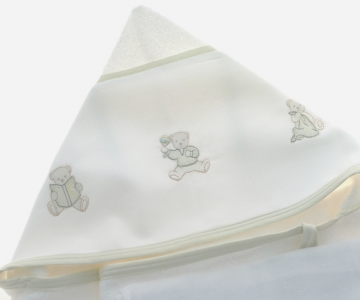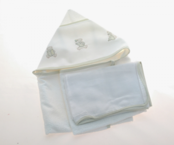 Contém 1 toalha de banho de 1,14 x 0,90 cm e 1 toalha fralda de 1,14 x 0,70 cm.